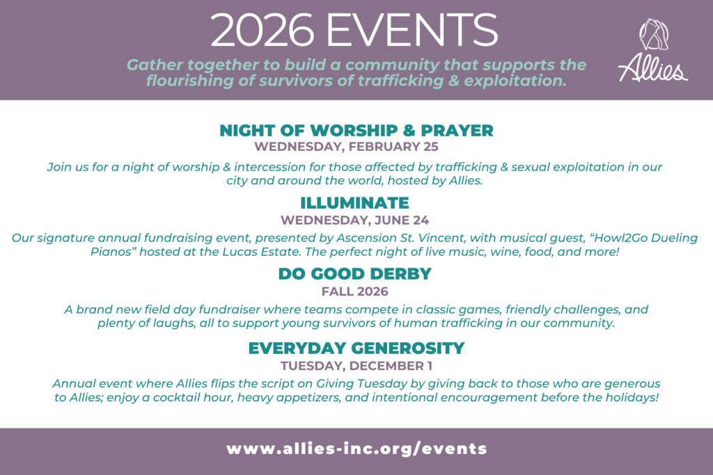 We invite everyone into the Allies community, to link arms with others as we create opportunities to invest in the flourishing of survivors and their families together.